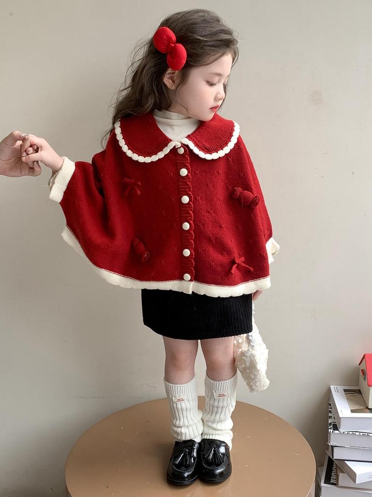 Модный красный вязаный кардиган для девочек 2025 – осенне-весенняя верхняя одежда для младенцев и маленьких девочек