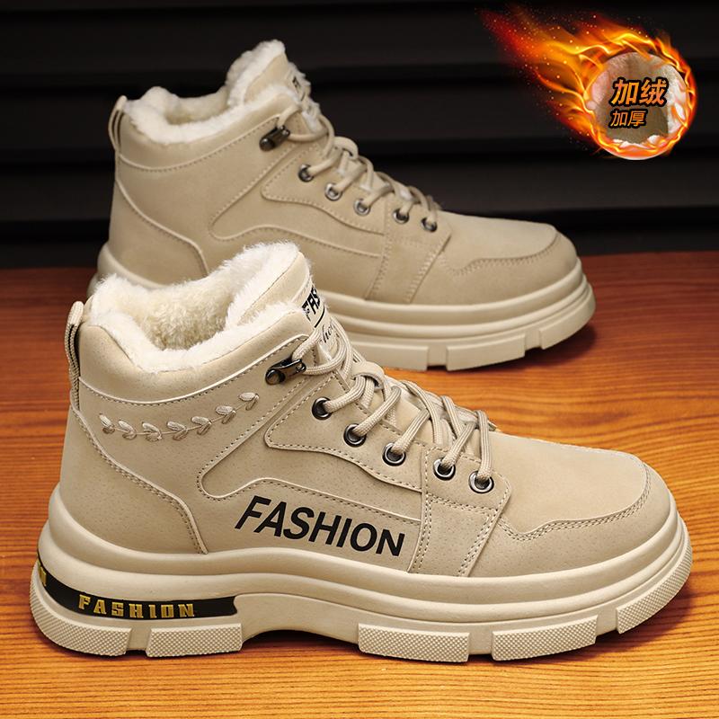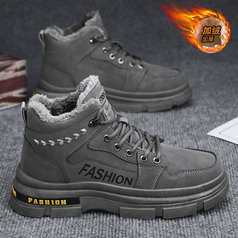 Зимние мужские ботинки 2024 года, износостойкие мужские ботинки, простые, на шнуровке, плюс бархатные теплые зимние ботинки, удобные мужские хлопковые ботинки для активного отдыха