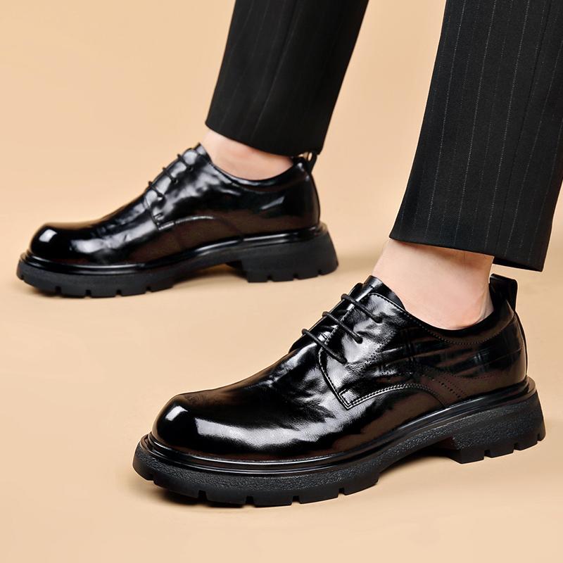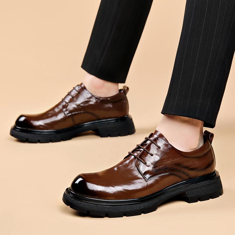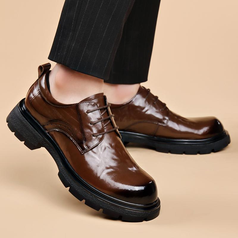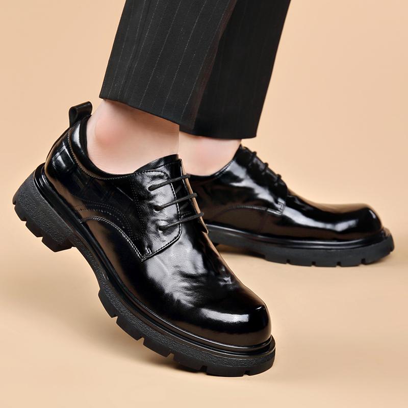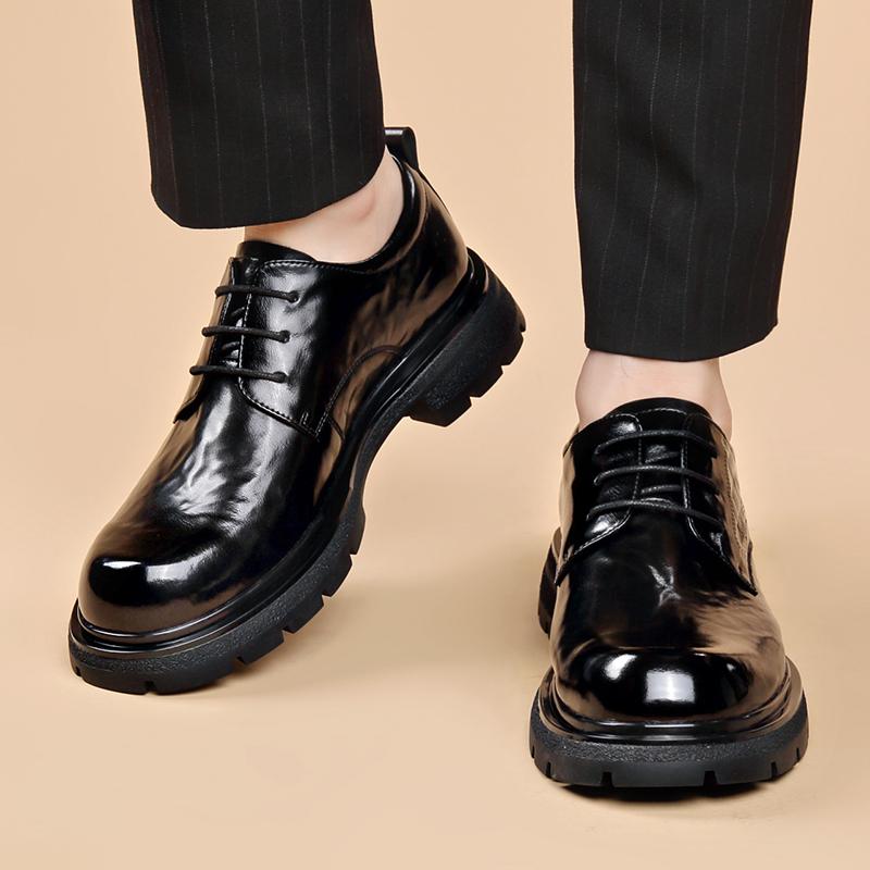 Мужские кожаные туфли на толстой подошве в стиле минимализма для отдыха на природе, деловых вечеринок, офиса, молодежи, увеличивающие рост туфли