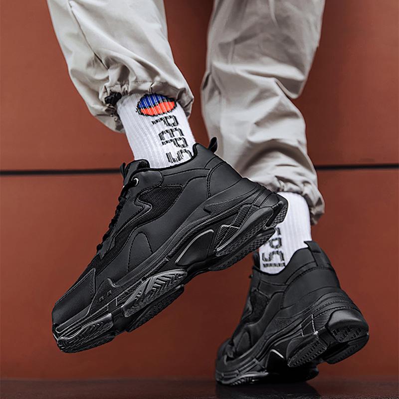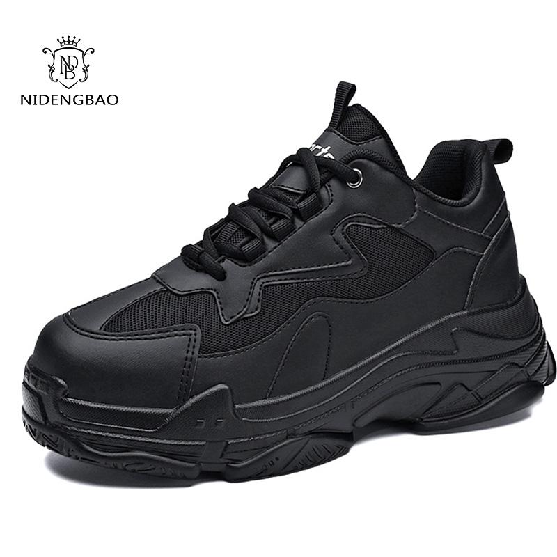 Новые мужские кроссовки на платформе, полностью черные, белые, дышащие, на шнуровке, модные, унисекс, массивные, для занятий спортом на открытом воздухе, мужская обувь
