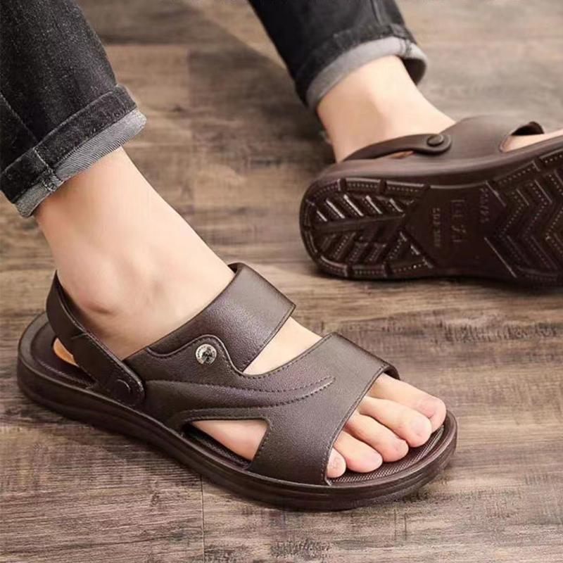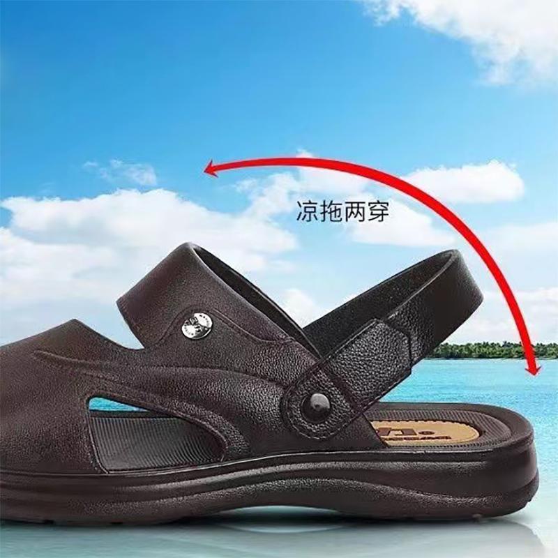 2024 Летние кожаные пляжные мужские сандалии, большие размеры, кожаные мужские сандалии, мягкая, удобная обувь для прогулок на открытом воздухе, мужская обувь