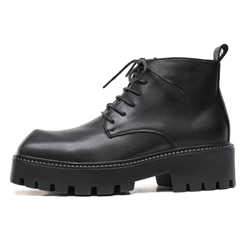 Мужские кожаные ботинки на толстой подошве. Модный минималистичный дизайн. Трендовая обувь для отдыха на свежем воздухе, офиса, вечеринок, осени и зимы.