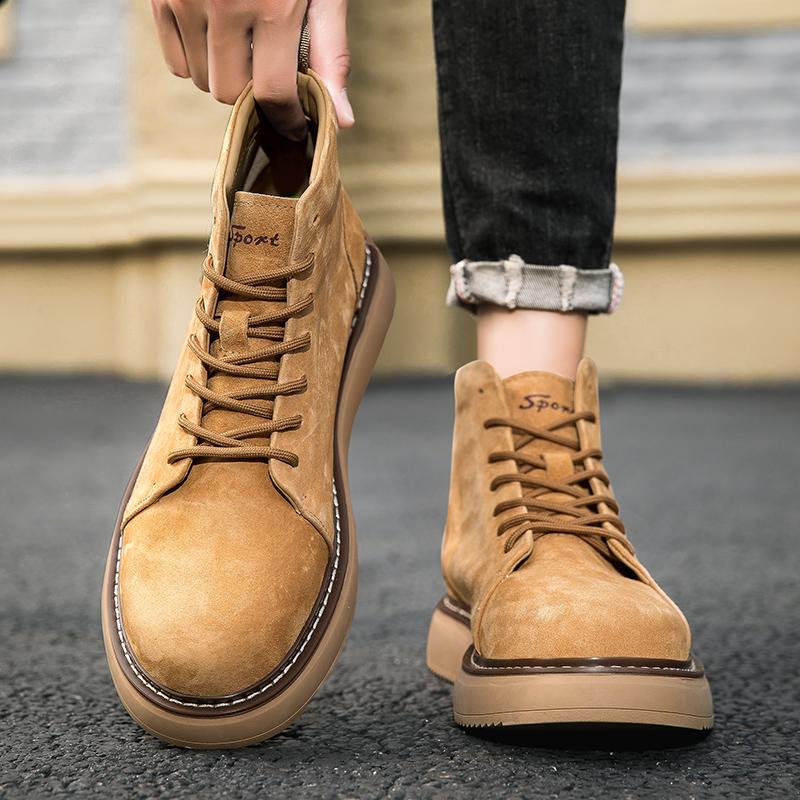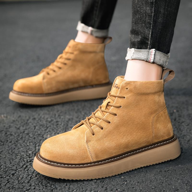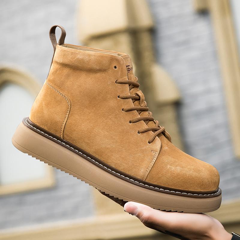Ботинки на платформе с высоким верхом, мужские замшевые кожаные туфли, модные уличные мотоциклетные ботинки до щиколотки, военные ботинки, зимние тактические ботинки на шнуровке