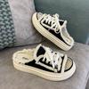 Женские парусиновые тапочки на плоской подошве 2024 года, новые женские повседневные туфли на шнуровке, женские модные тапочки на платформе, женские джинсовые пляжные сандалии с открытым носком