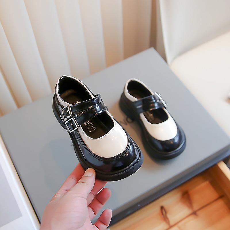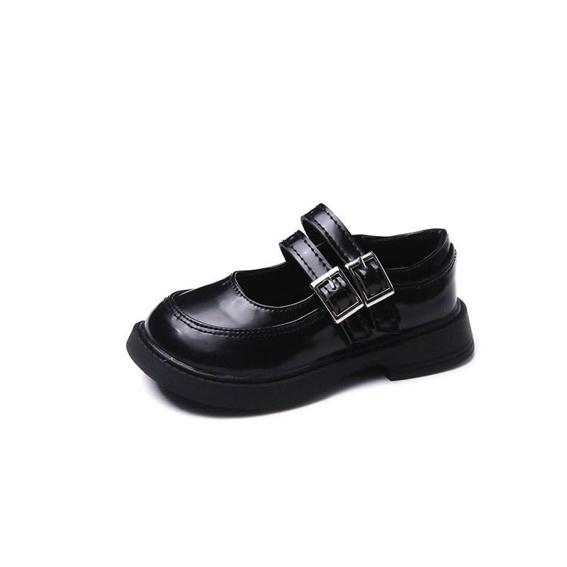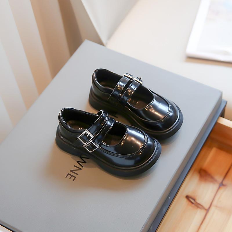 2024 Новые простые черные школьные туфли для детей с круглым носком, подходящие по цвету ПУ пряжки, нескользящие детские модные кожаные туфли на плоской подошве