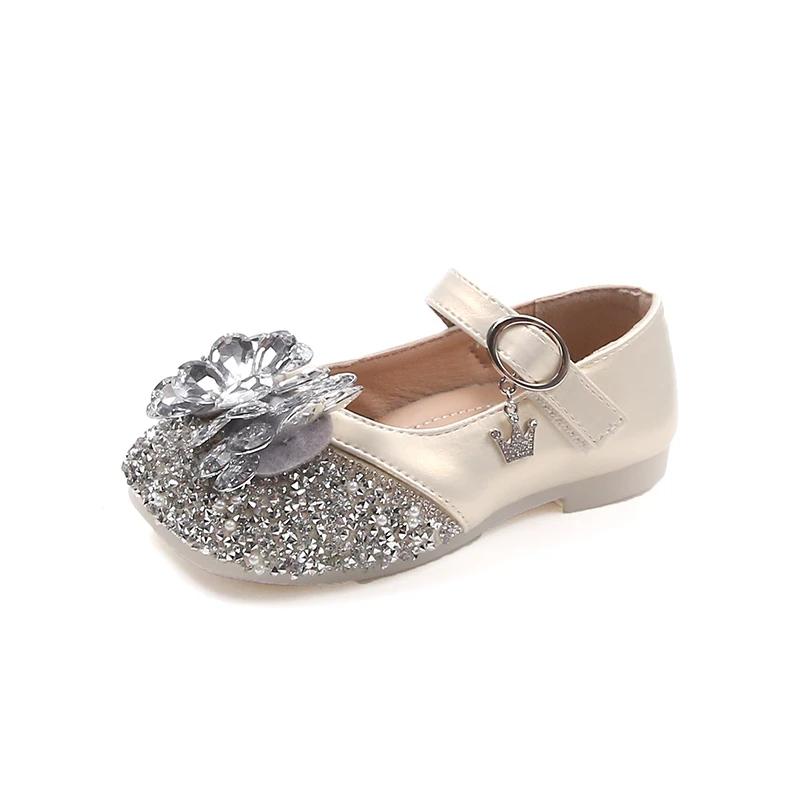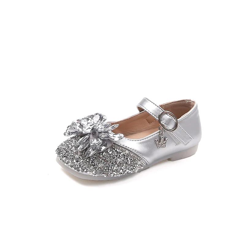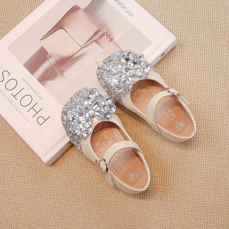 2024 Детские кожаные туфли для девочек Осень Новая мода Мягкие Удобные Туфли Принцессы со стразами Шикарные Противоскользящие Туфли для платья