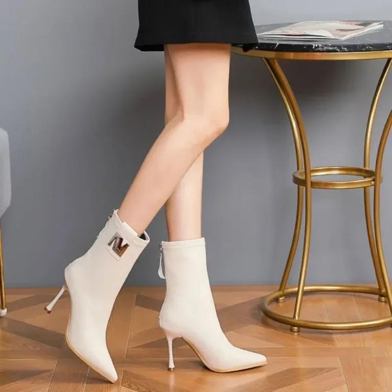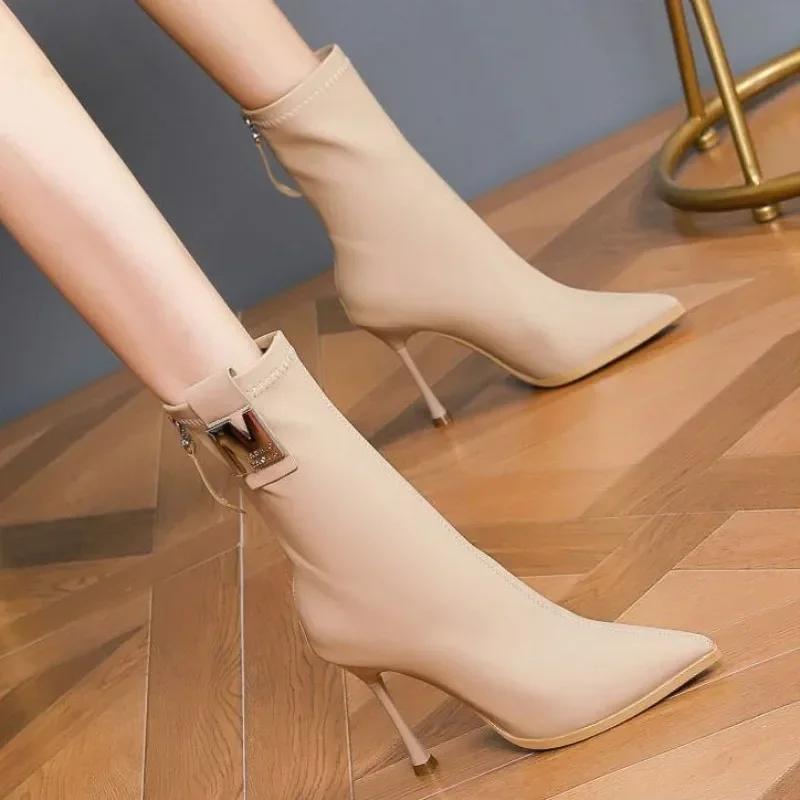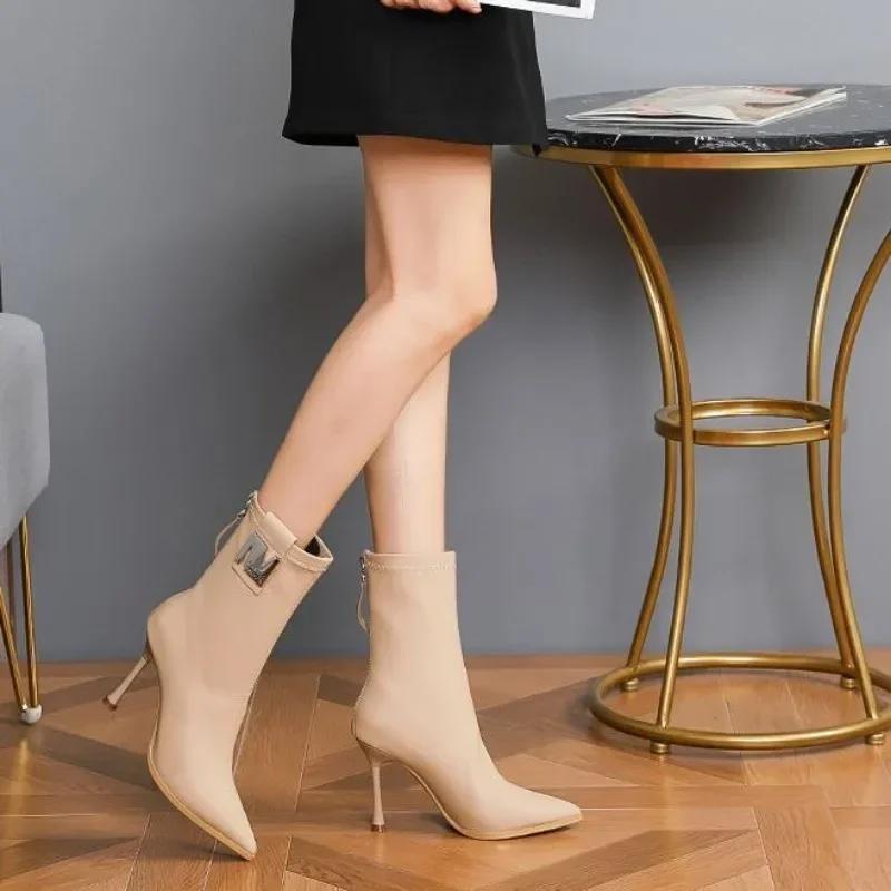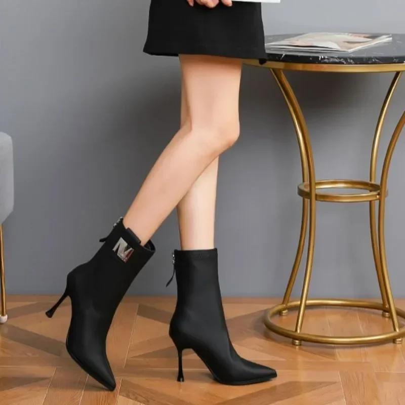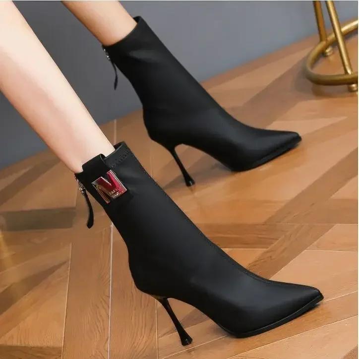 Женские туфли на высоком каблуке до середины голени с острым носком, женские полусапожки большого размера, теплая, элегантная обувь на каблуке, горячая распродажа качества Y2k, ПУ