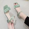 Модные женские босоножки на квадратном каблуке 2024 года, летние новые корейские босоножки с плиссировкой и пряжкой на щиколотке, повседневные босоножки на высоком каблуке в простом римском стиле