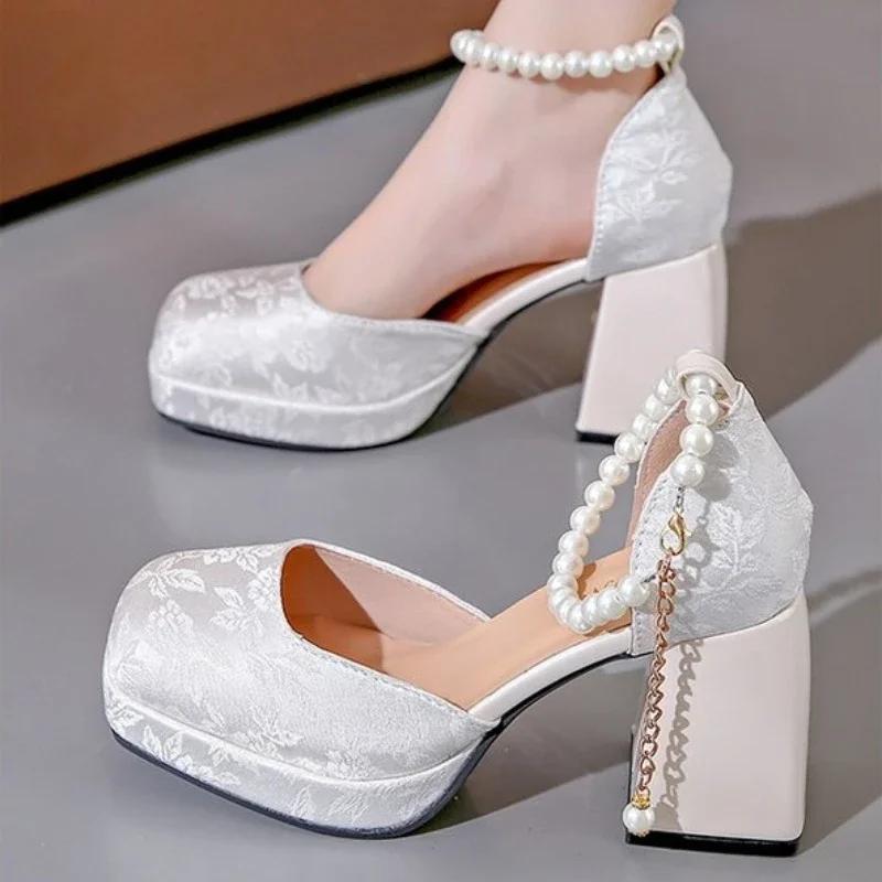 2024 Новые шелковые свадебные женские туфли-лодочки на высоком каблуке в стиле панк с пряжкой на платформе и ремешком