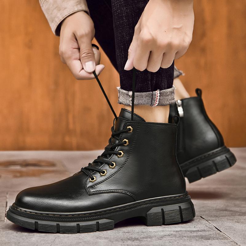 Ретро мужские ботинки новые модные удобные осенне-зимние плюшевые теплые высокие кожаные ботинки брендовые классические черные туфли со шнуровкой среднего берца