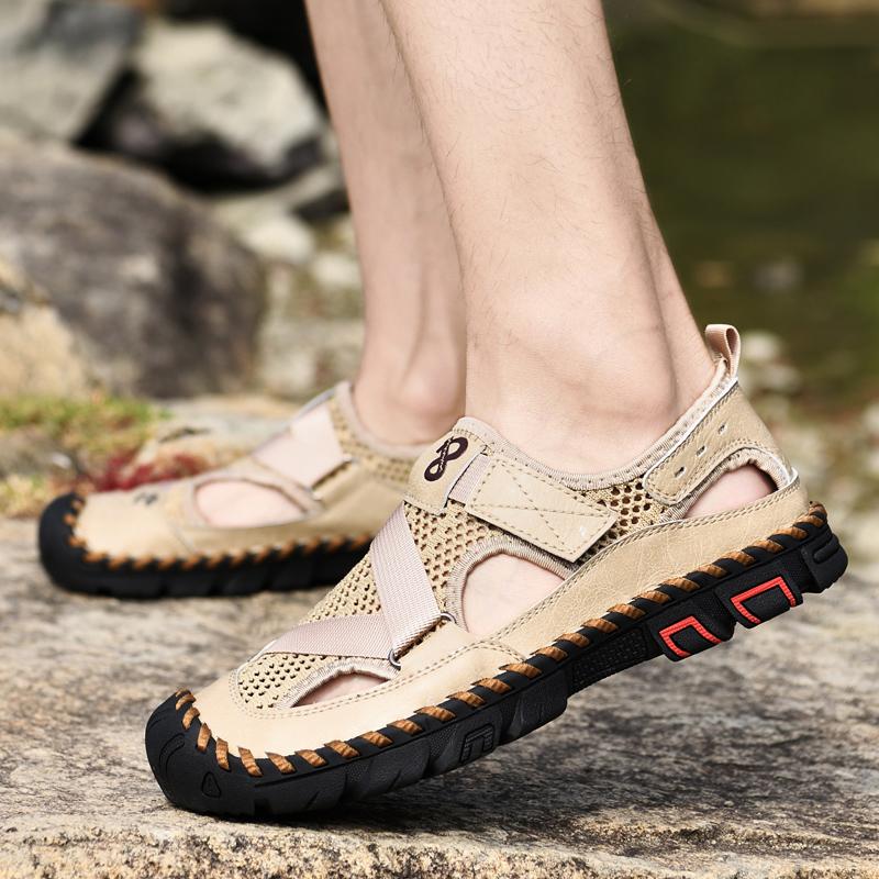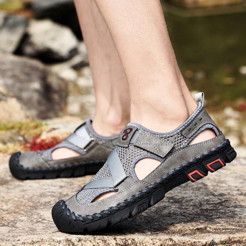Мужские летние сандалии для активного отдыха, мужская сетчатая обувь для водных видов спорта, сандалии на плоской подошве 2024, мужские сандалии для походов, полые дышащие повседневные туфли