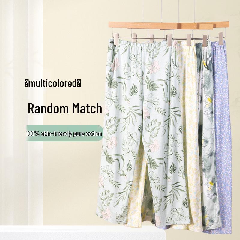 Женские трикотажные пижамные брюки из чистого хлопка - Весна/Лето, Свободный крой, Большой размер, Эластичная талия, Защита от комаров
