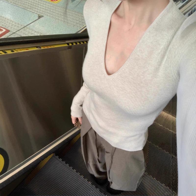Однотонная трикотажная базовая рубашка с V-образным вырезом, женский осенне-зимний новый внутренний свитер, чистый, соблазнительный, облегающий и стройнящий, универсальный топ с длинным рукавом