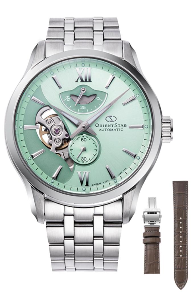 Orient Star Автоматические Слоистые Ограниченная Серия Включает Запасной Открытый Мятный Мужские Часы, Скелетон, Механические, Япония, 400, Ремешок, 2-Года