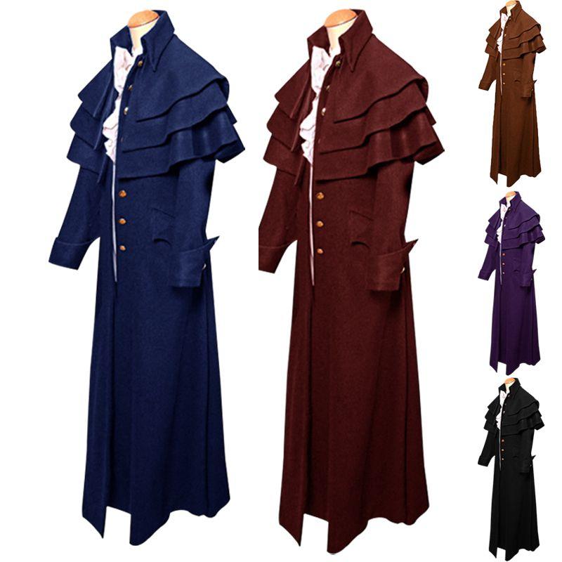 Ретро Средневековый Мужской Стимпанк Тренч Готическая Куртка Костюм Косплей