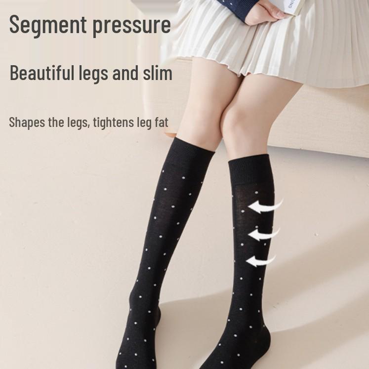 Осенне-зимние утягивающие гольфы в горошек, милый стиль Miu, женские длинные гольфы из гребенного хлопка с высоким голенищем