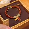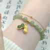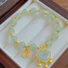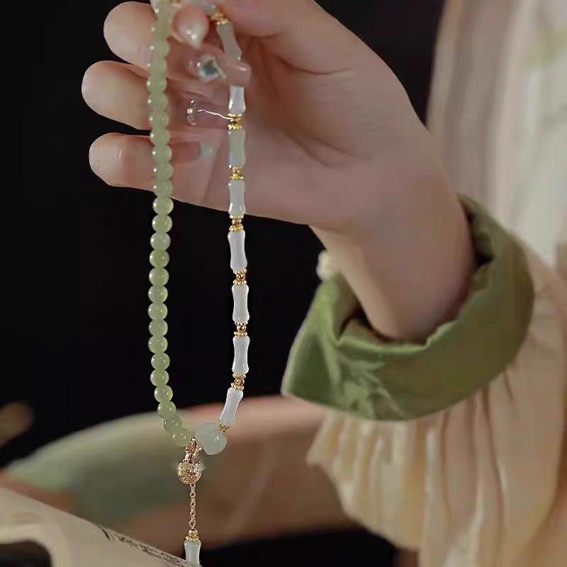 Браслет из золотого шелка, нефрита и бамбука: Элегантный дизайн тыквы с бусинами и имитацией нефрита Хэтянь в новом китайском ретро-стиле