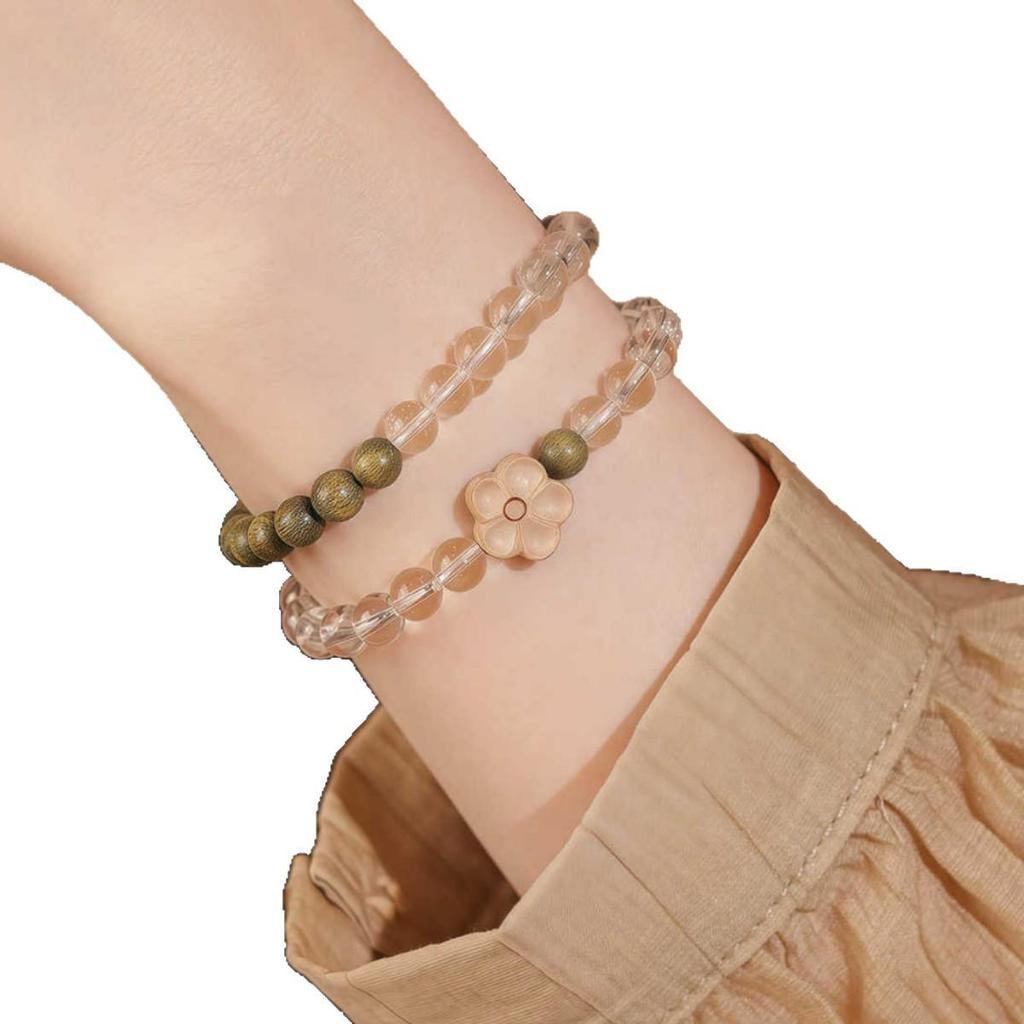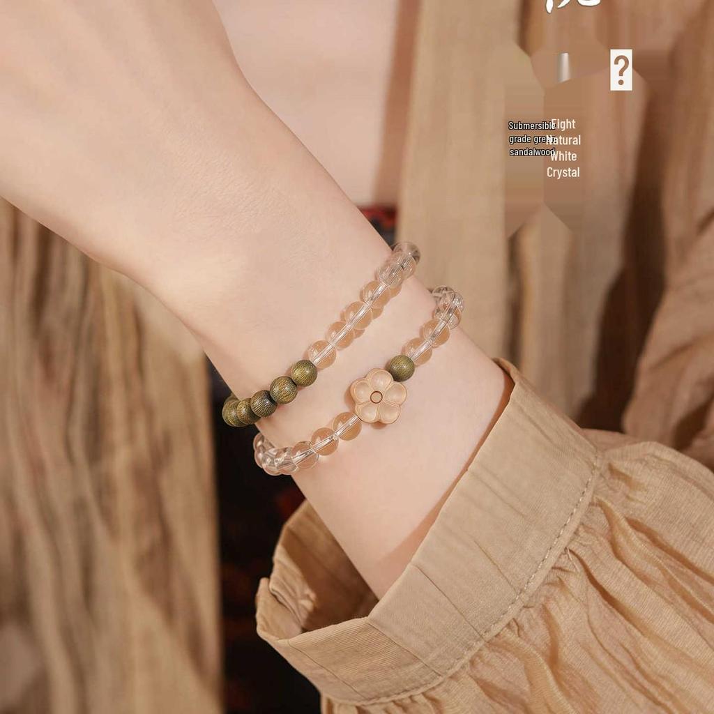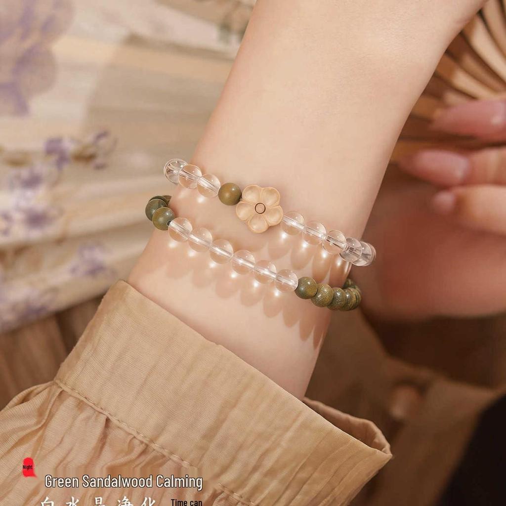 Китайские чётки из зелёного сандала с цветками персика: Украшения из ретро буддийских бусин, привлекающие любовь