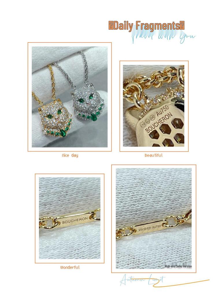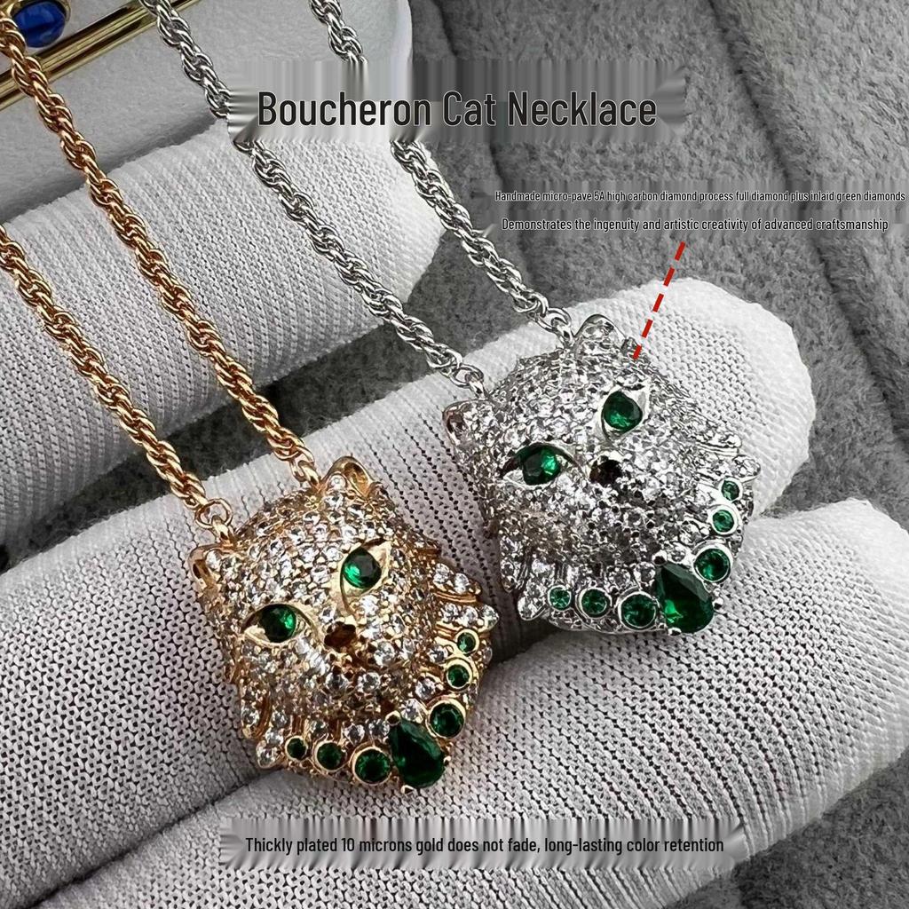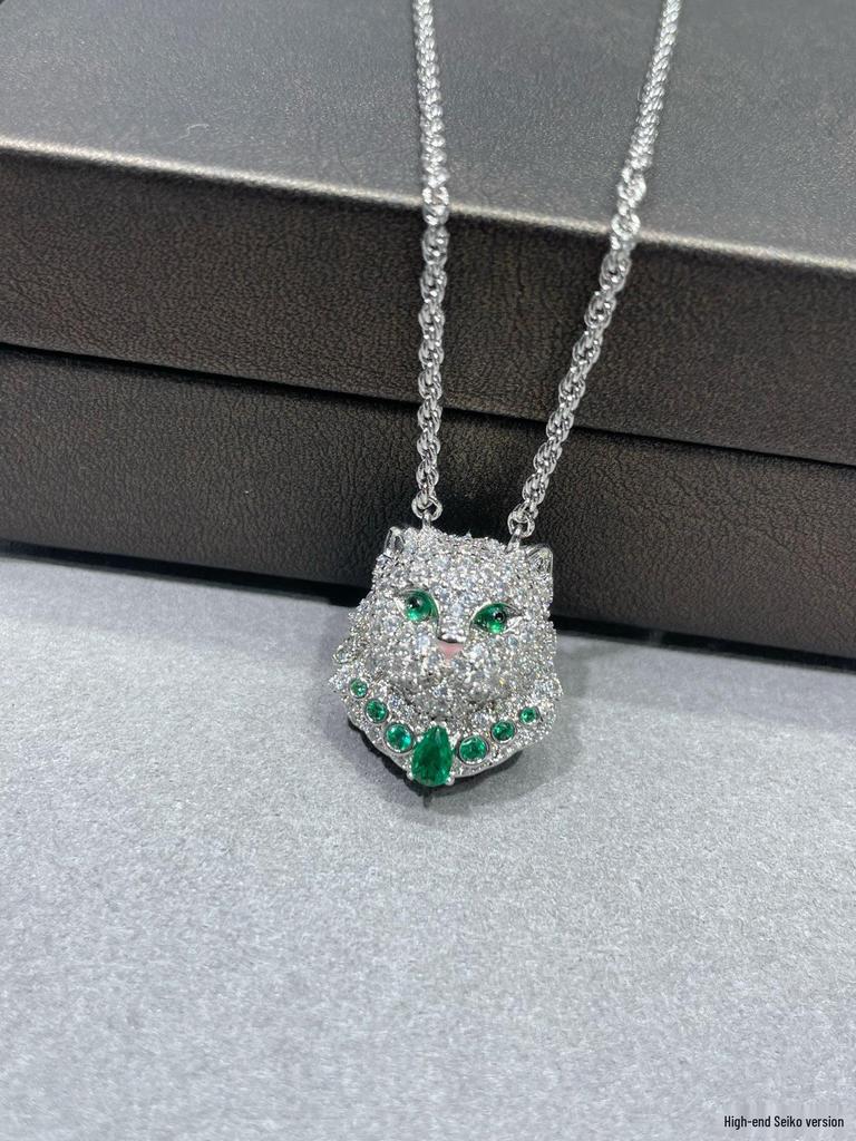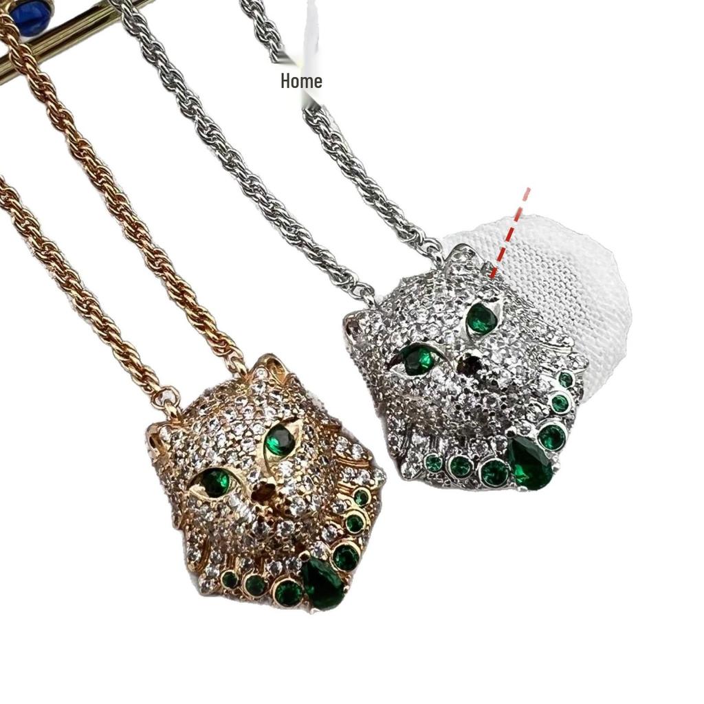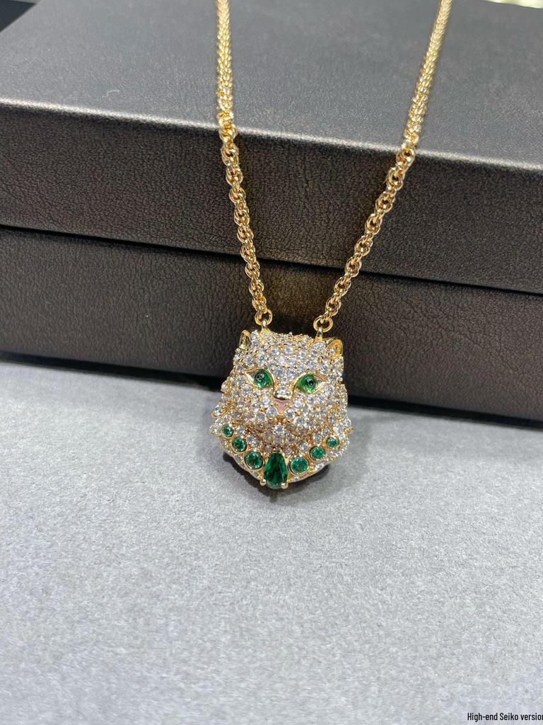 Baoshihua Gold-Plated Braided Necklace with Emerald Green Kitten Pendant & Full Diamond Inlay