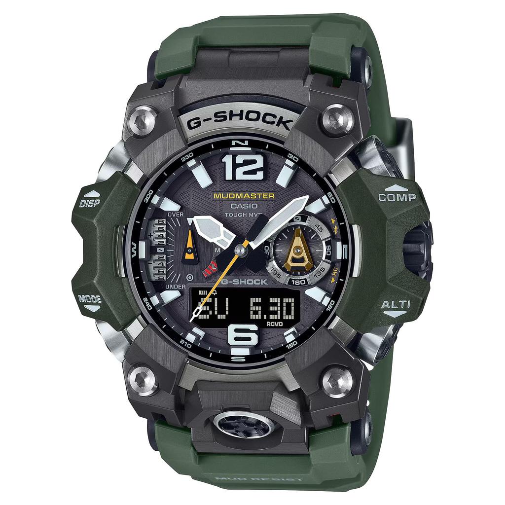 Casio Кварцевые часы с ремешком из нержавеющей стали, мужские, в военном стиле, GWG-B1000-3AER, зеленые,