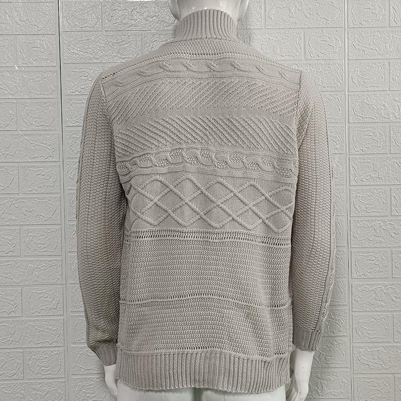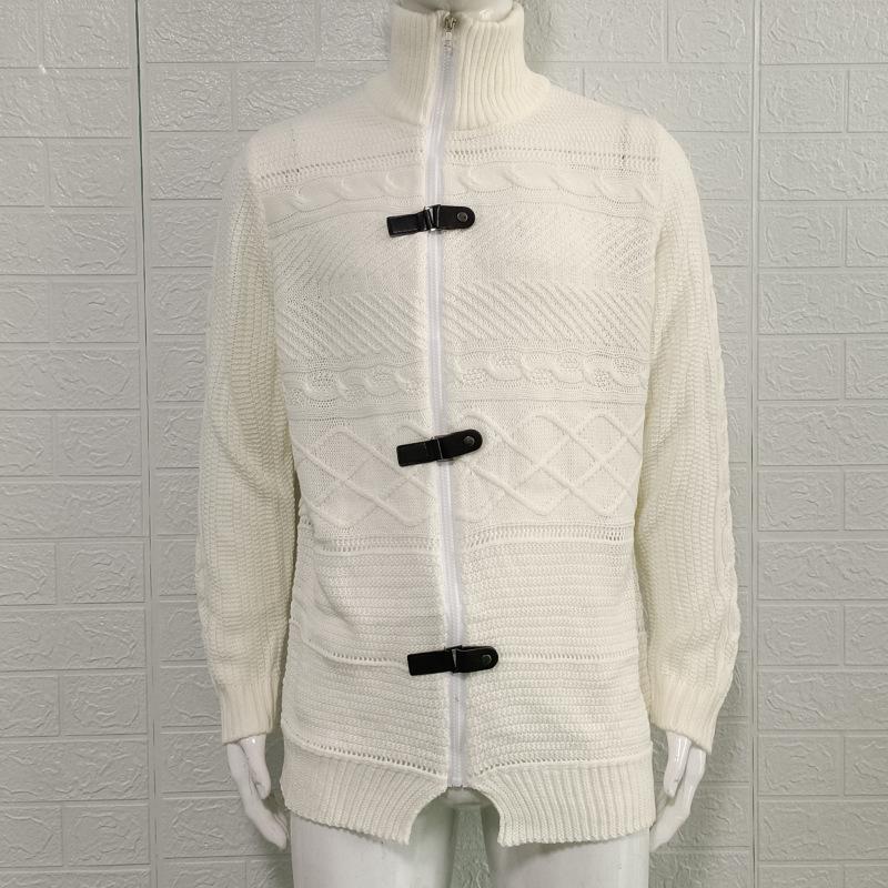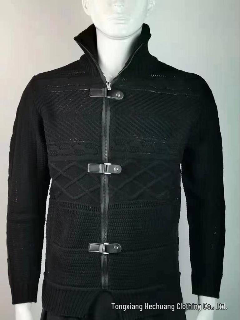 Мужской свитер-кардиган большого размера с высоким воротником на осень/зиму 2025 года с кожаной пряжкой - вязаное пальто с длинным рукавом в европейском и американском стиле