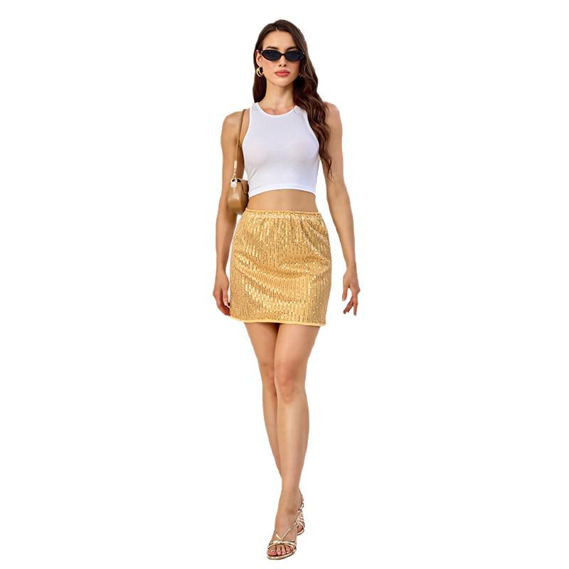 Мини-юбка бодикон с пайетками с высокой талией - Европейская и американская клубная одежда для вечеринок