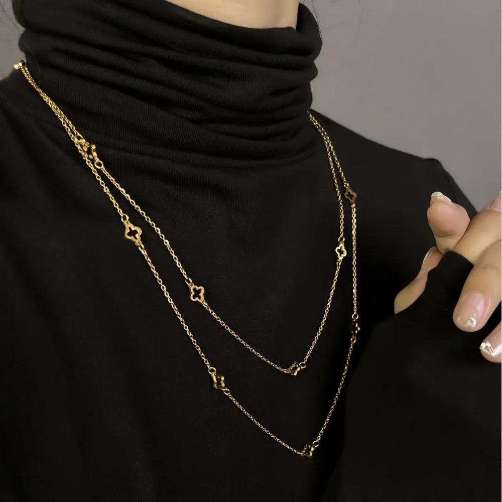 Длинное ожерелье с четырехлистным клевером, женская цепочка для свитера, многослойная титановая сталь, ощущение высокого класса, Feelunique 2023, трендовая новая бижутерия — купить товар онлайн с бесплатной доставкой по всему миру!