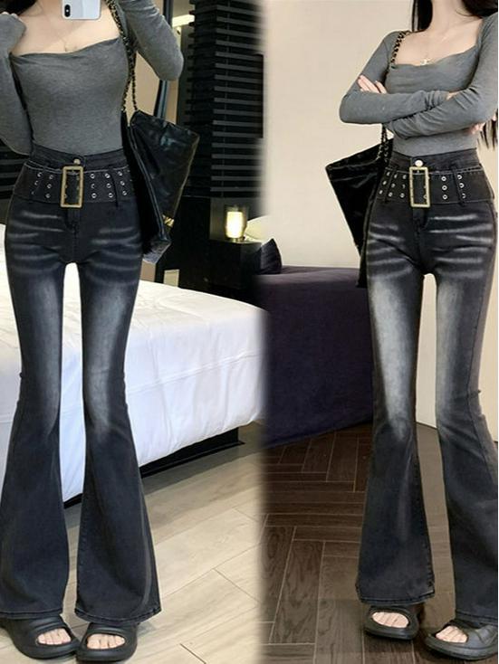 Ощутите идеальное сочетание винтажного шарма и современного комфорта с этими джинсами слим-фит с широкими штанинами.. Эти брюки, изготовленные из прочного денима, имеют эластичный пояс для удобной регулируемой посадки.. Высокая линия талии подчеркивает ваш силуэт, а универсальный дизайн делает их идеальными как для повседневных, так и для полуформальных случаев.. Идеальные для переходных сезонов весны и осени, эти ретро-джинсы-клеш легко сочетают в себе стиль и практичность, что делает их обязательным дополнением к любому гардеробу.