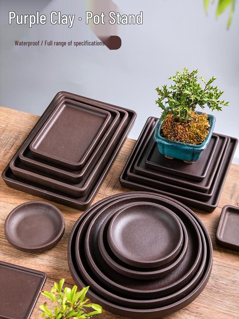 Керамический поддон для цветочного горшка из фиолетовой глины - Прямоугольное/Круглое основание для сбора воды, для бонсай