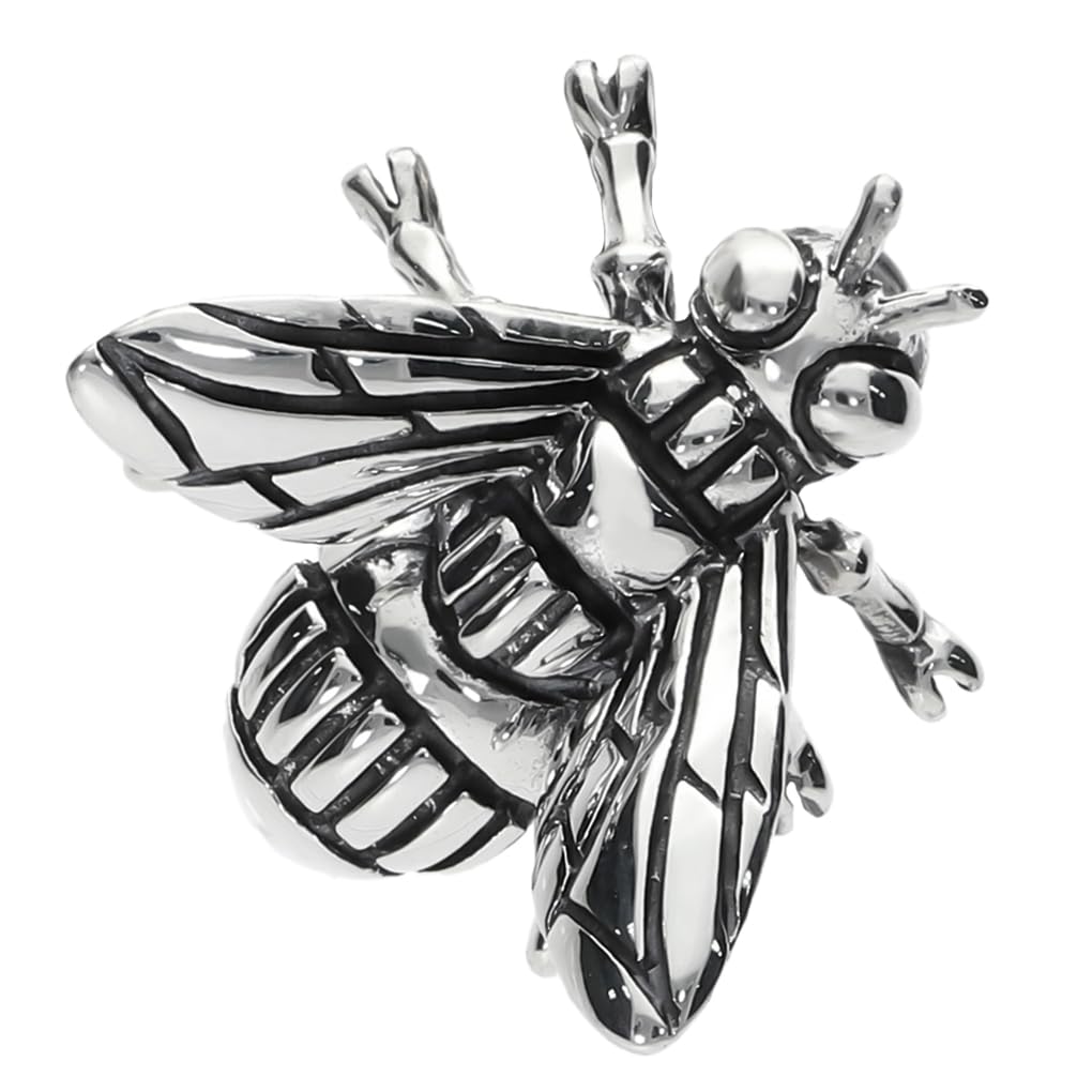 Этот трехмерный серебряный мотив мухи воссоздает ее поразительную форму в уменьшенном размере.