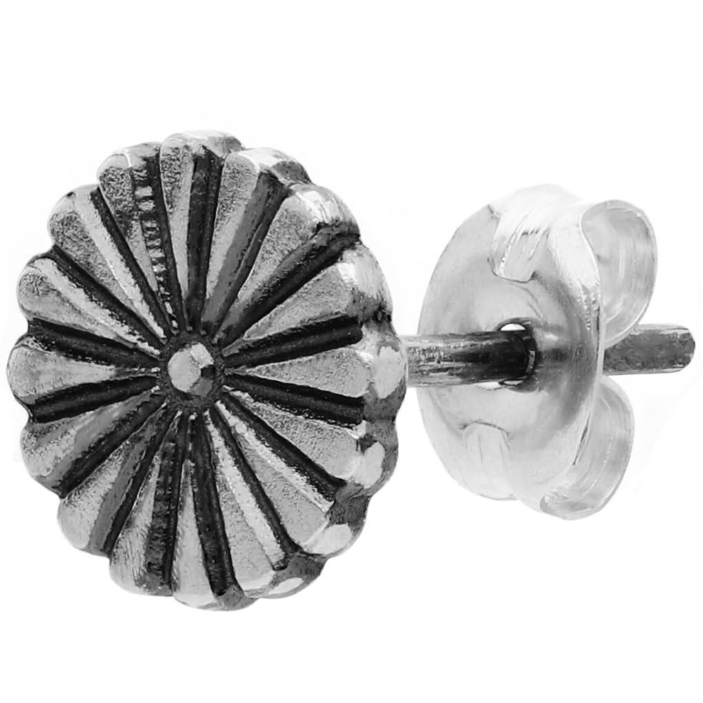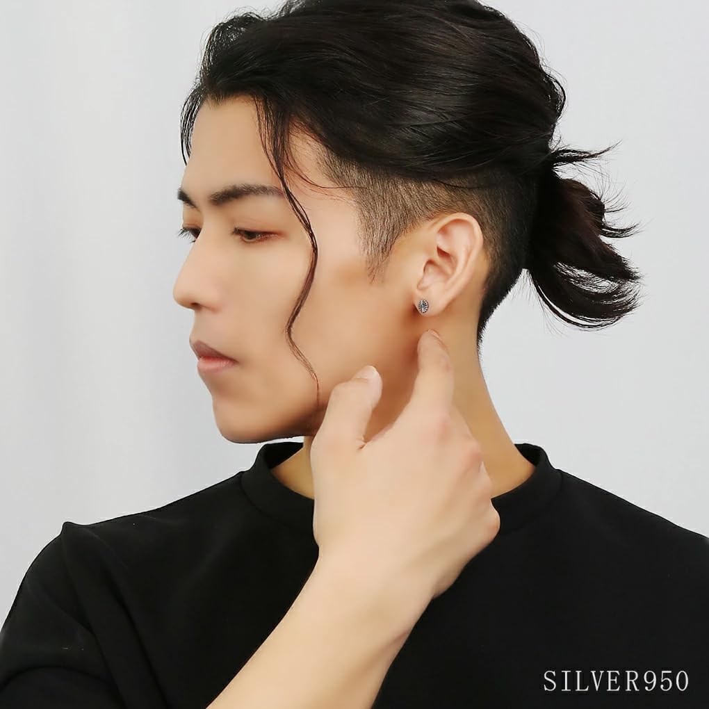 Ryutou Large Chrysanthemum Crest Men's Silver Stud Earrings, Single Ear, 950 Sterling Silver, Traditional Craftsmanship, for Men and Boyfriends