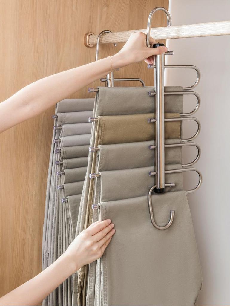 Выдвижная многослойная складная вешалка для брюк из нержавеющей стали с волшебными зажимами