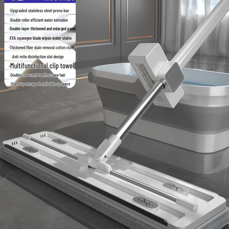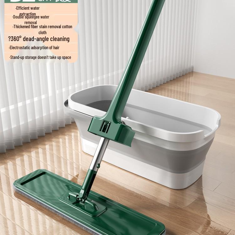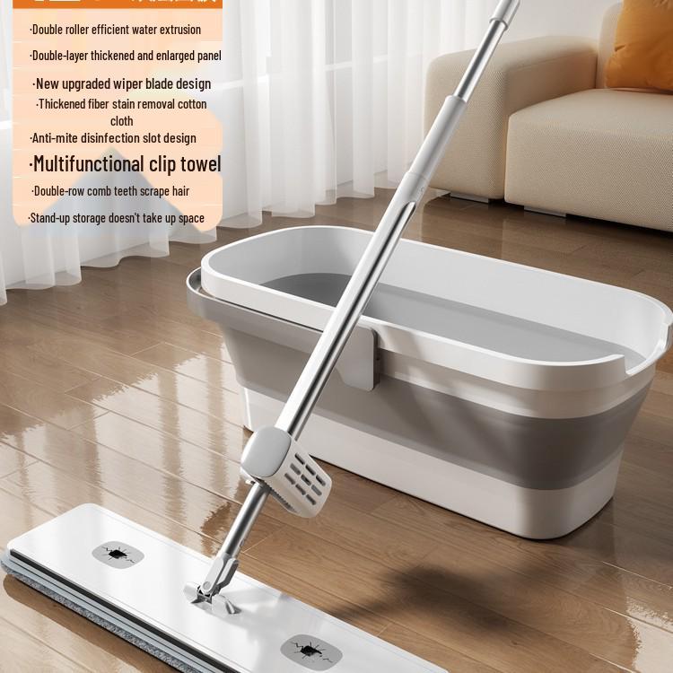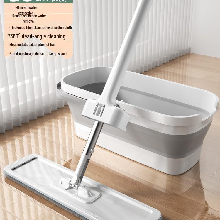 Легкая швабра без рук с ведром - Ленивая уборка пола, Складная плоская швабра, Очистка одним движением, Не требует мытья