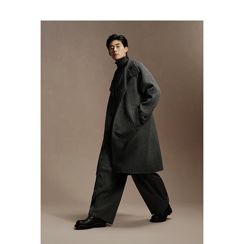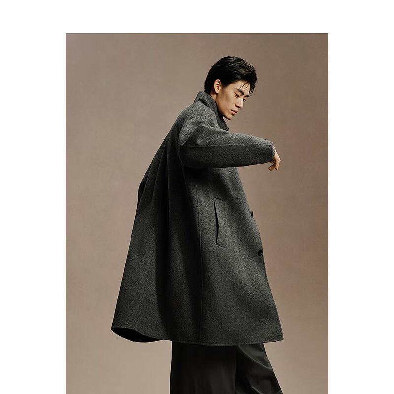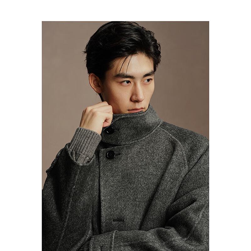 Мужское пальто PEACEBIRD темно-серого цвета из смесовой шерсти со стойкой
