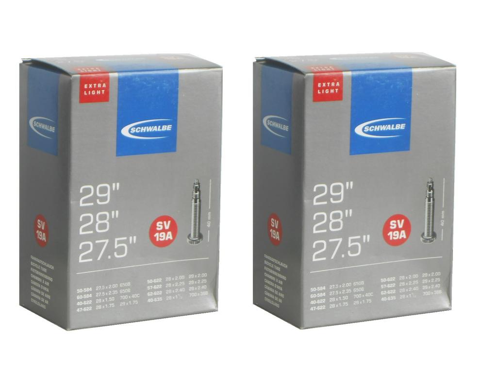 Set of 2 SCHWALBE Lightweight Tubes 19A-SV for 27.5x2.00/2.35, 28x1.5/2.40, and 29x1.75/2.40 Tires with 40mm Presta Valves [Imported]