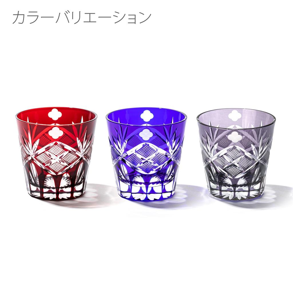 [Official Taiburo Workshop] Edo Kiriko Glass with Four-Leaf Genroku Crest and Open Top (Edo Purple) TB90625-4M, Wooden Box, Made in Japan