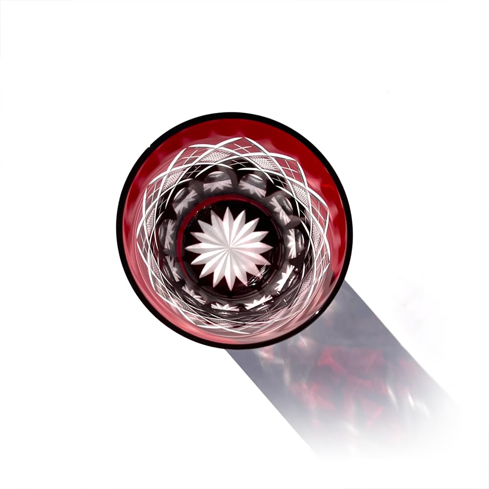 [Official Taiburo Workshop] Edo Kiriko Yarai Nanoko Crest Tumbler (Red) TB90419R, Wooden Box, Made in Japan