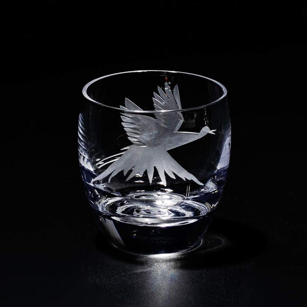 [Official Taiburo Studio] Edo Kiriko Mount Fuji and Crane Chilled Sake Glass TB0050-32, Paper Boxed, Made in Japan