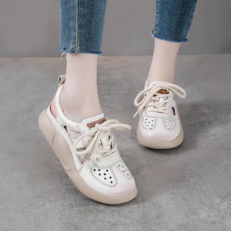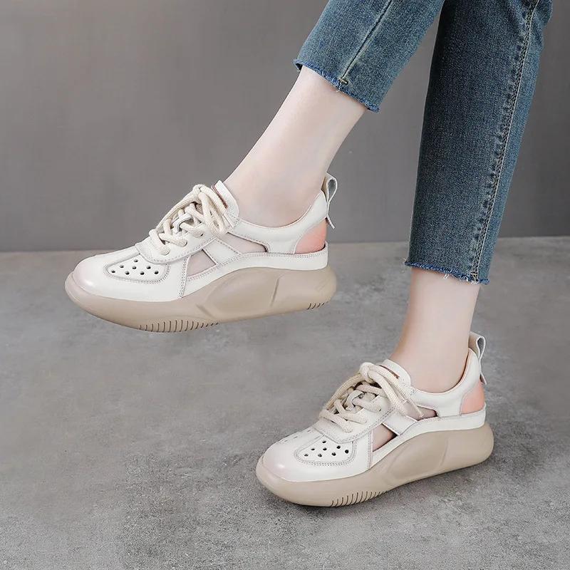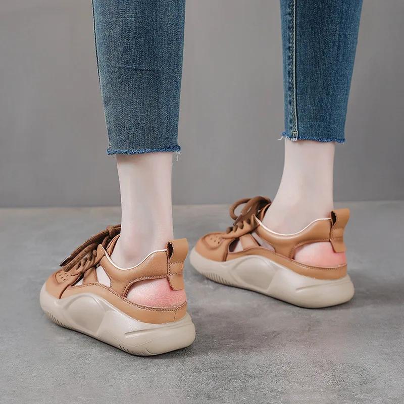 Модные женские сандалии на платформе 3,5 см, новая летняя обувь с круглым носком, на шнуровке, из натуральной кожи, на толстой подошве, легкие, повседневные кроссовки-сандалии