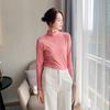 Топ с длинным рукавом на раннюю осень, ощущение обнаженности: Приятный к коже, с высоким воротником, модный девятицветный, японско-корейский тренд, молочный шелк для женщин