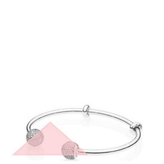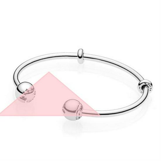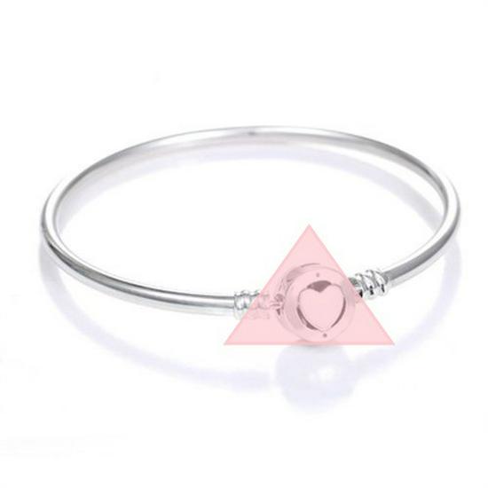 Браслет-бангл из белой меди с посеребрением, с подвесками в виде сердечка и Микки/Минни