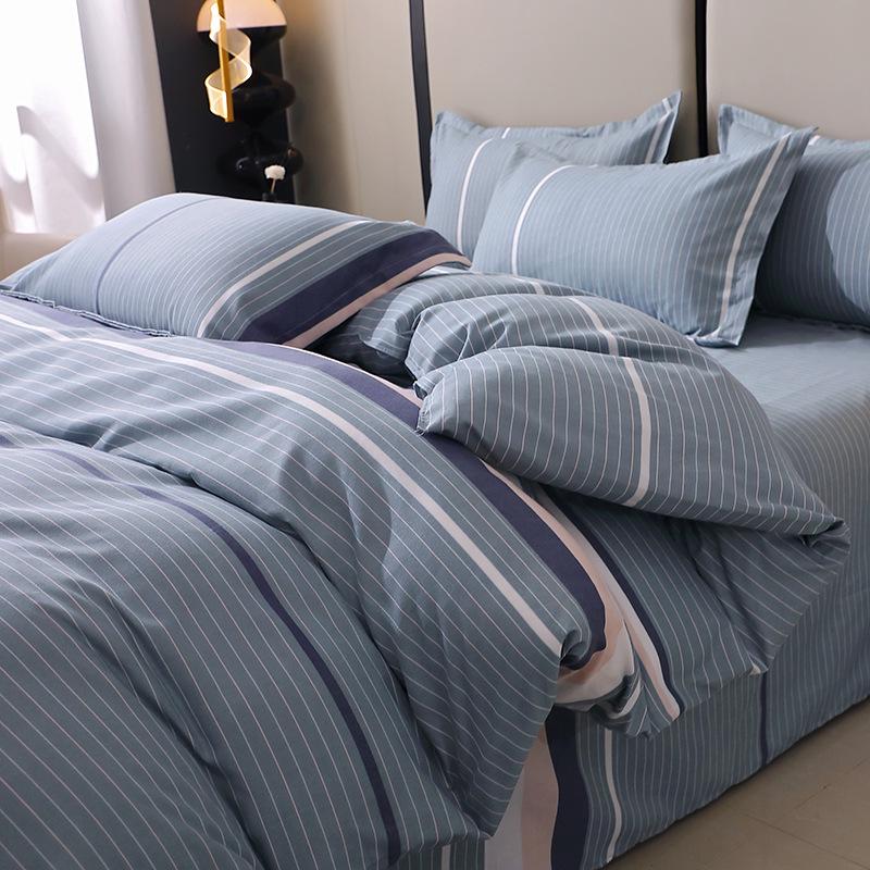 Постельный комплект из полосатого матового хлопка для осени/зимы – Утолщенный пододеяльник и простыня