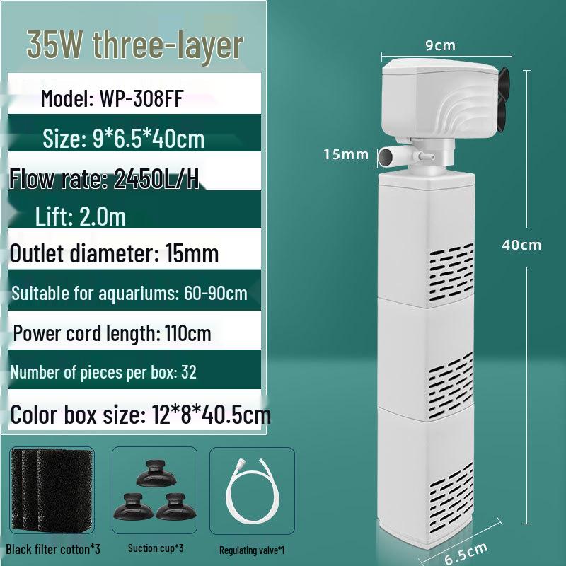 Аквариумный бесшумный фильтр «три в одном» с насосом и системой оксигенации