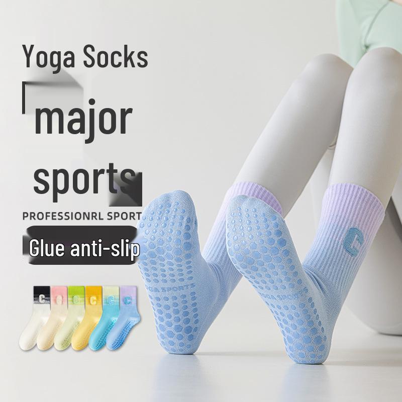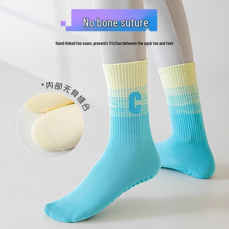 Women's Anti-Slip Pilates Yoga Socks - Sweat-Absorbent Mid-Calf Design for Spring and Autumn Workouts