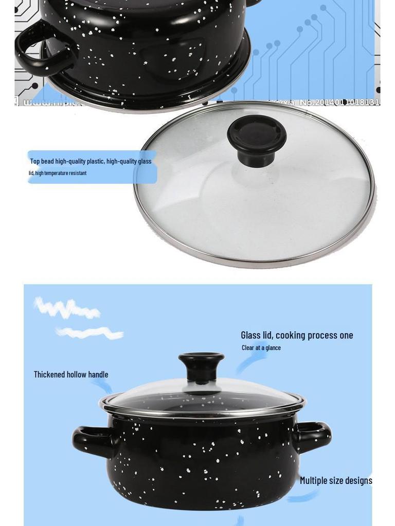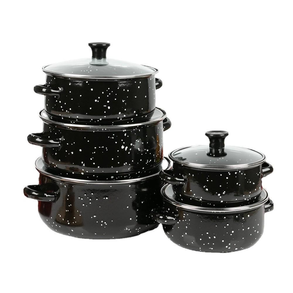 Набор эмалированной посуды из пяти предметов с черной крапинкой: Кастрюли и кастрюли с двумя ручками