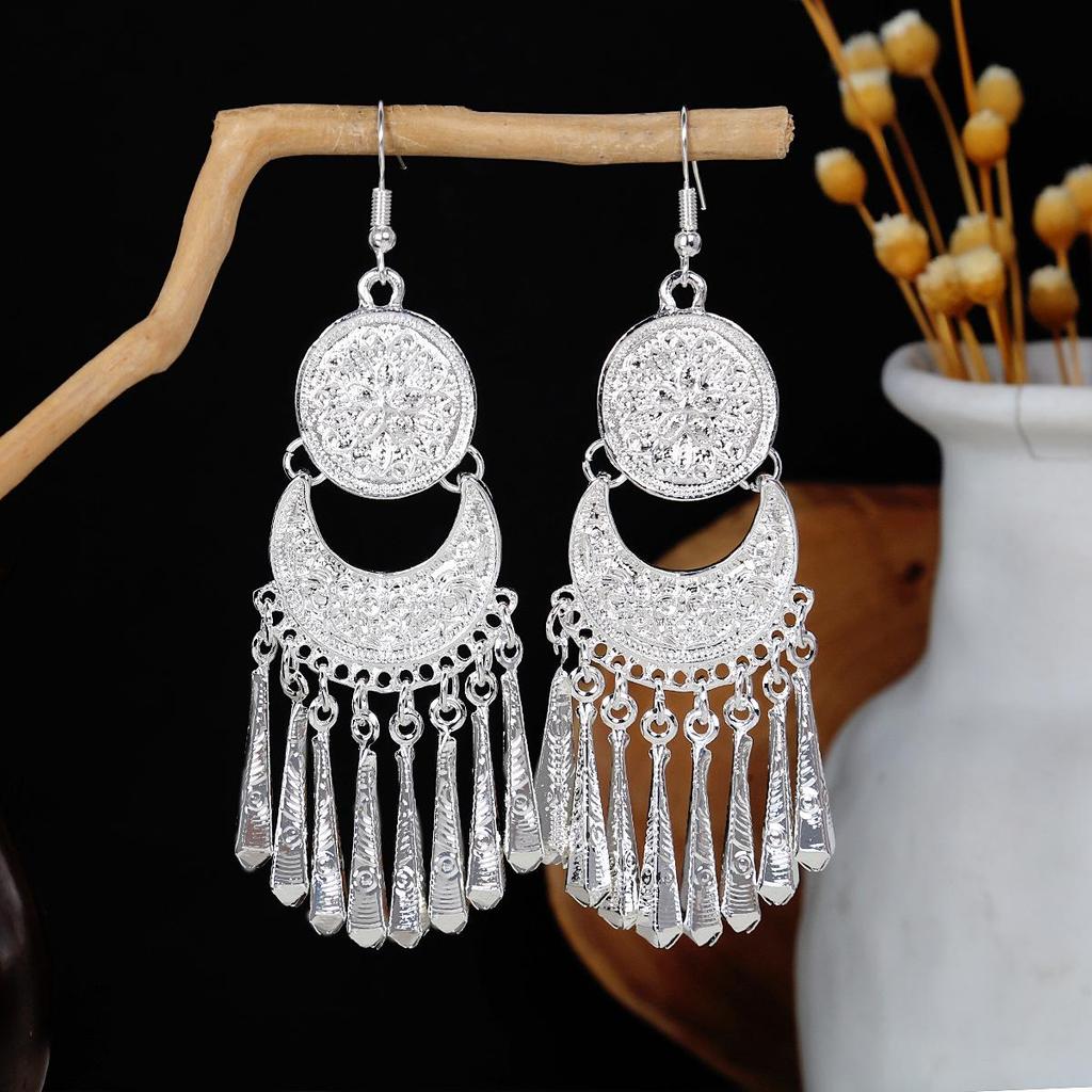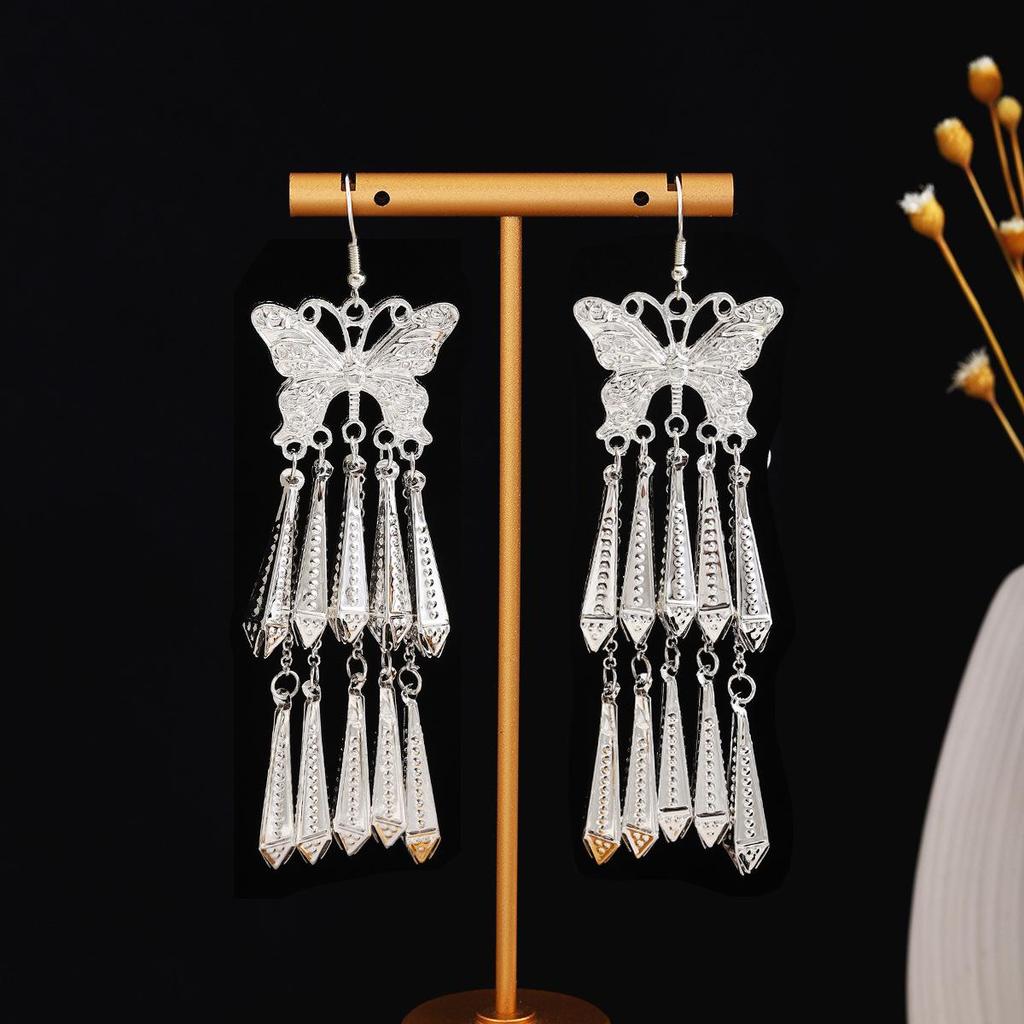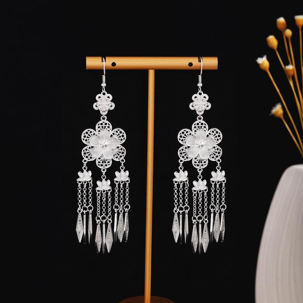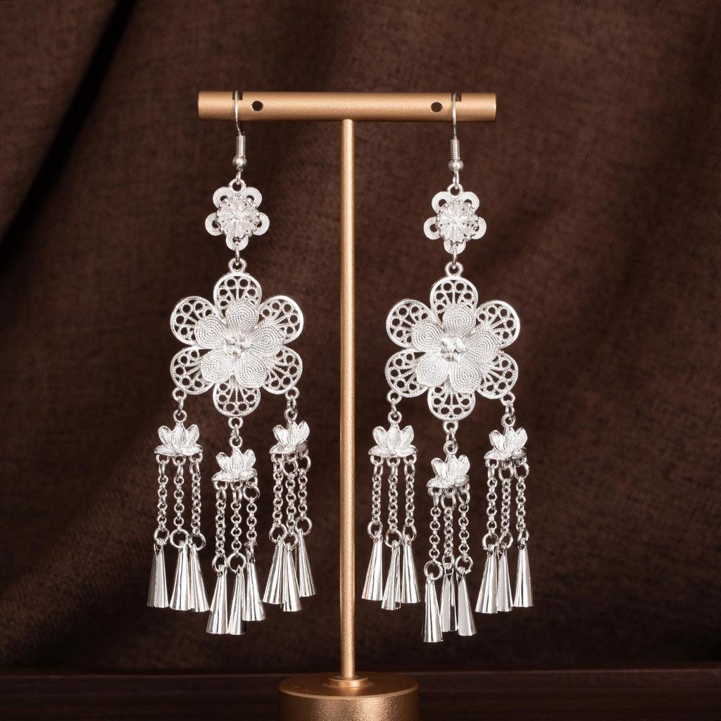 Серьги с кисточками из серебра Мяо: Этнический стиль, Модная гипербола, Дизайн легкой роскоши