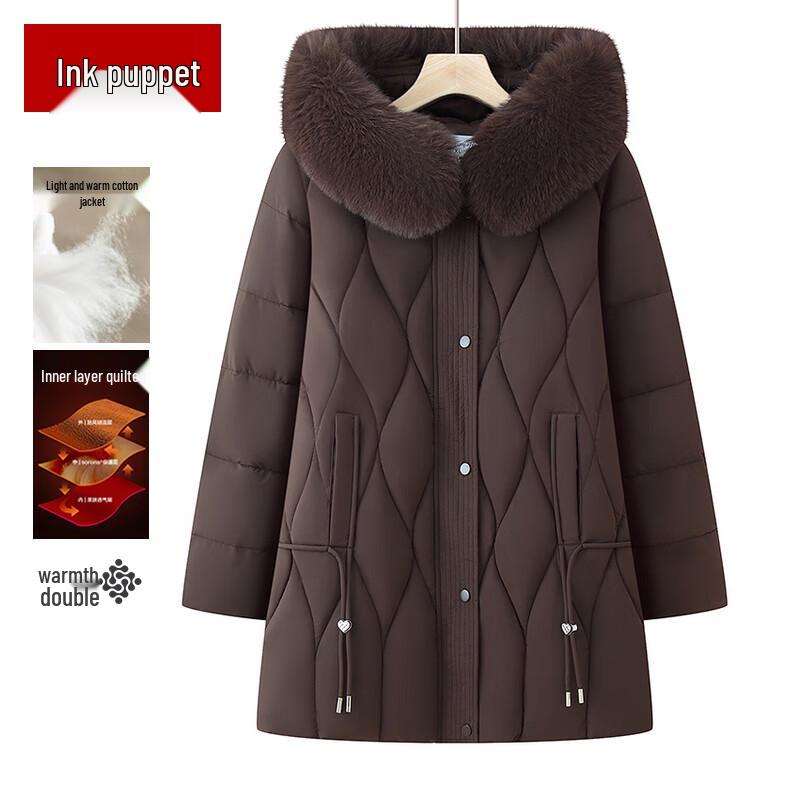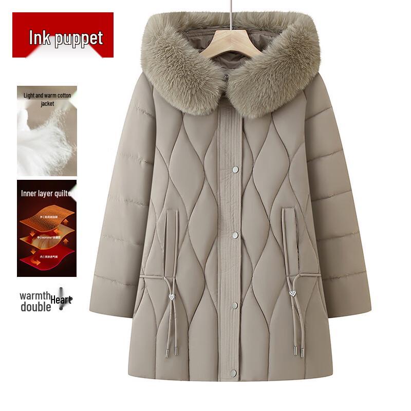 Женское зимнее стеганое пальто средней длины с капюшоном для пожилых