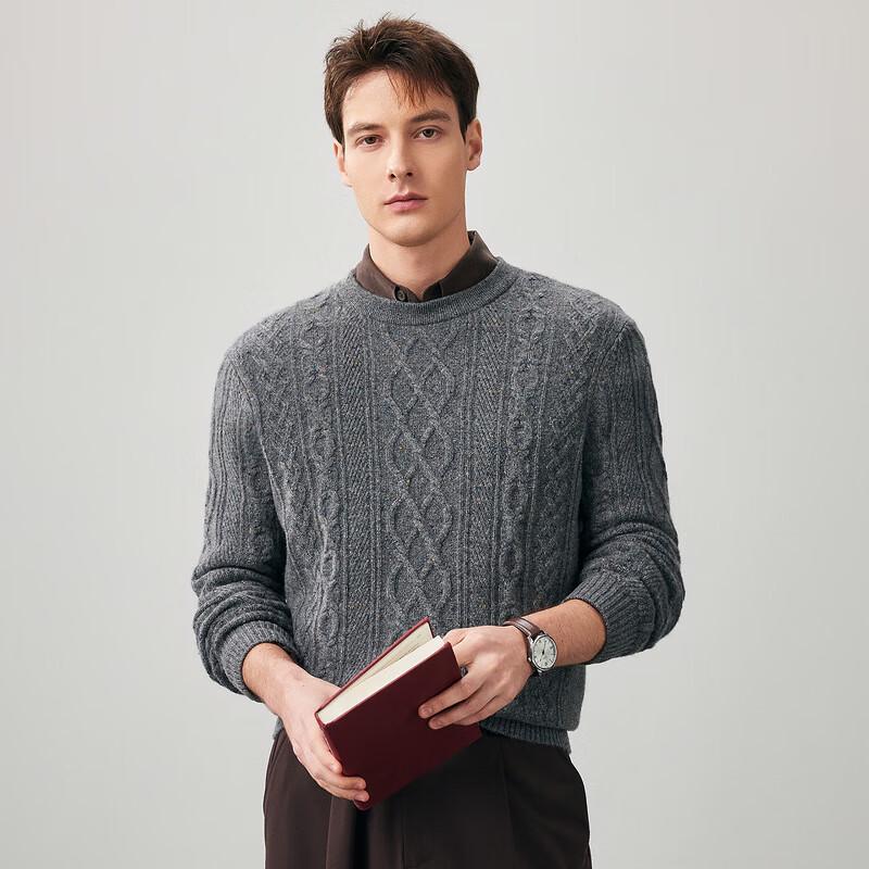 Men's Thickened 100% Cashmere Cable Knit Round Neck Sweater