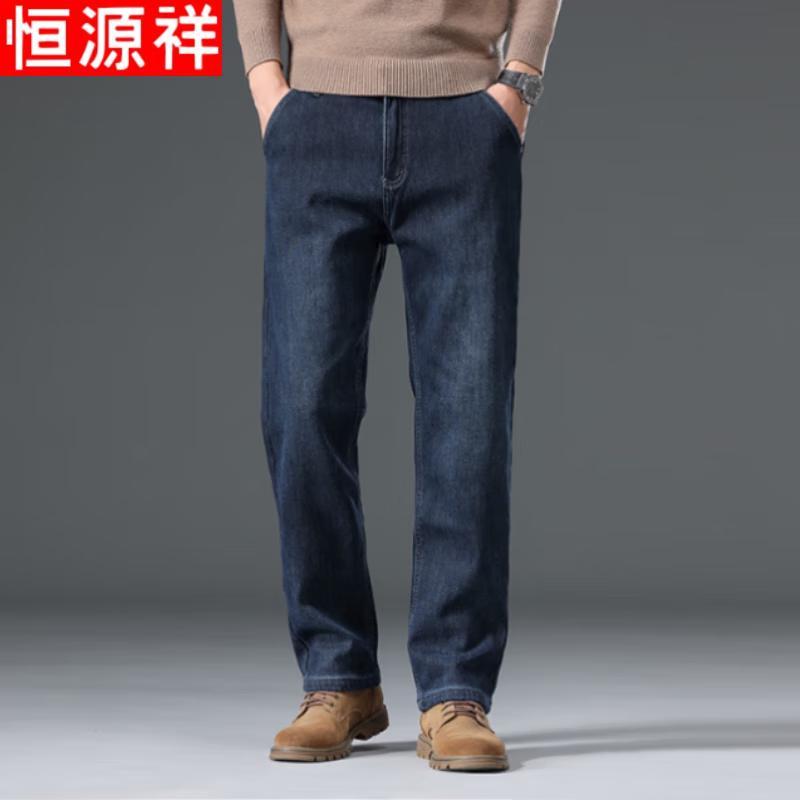 Hengyuanxiang Мужские зимние прямые джинсы на флисовой подкладке