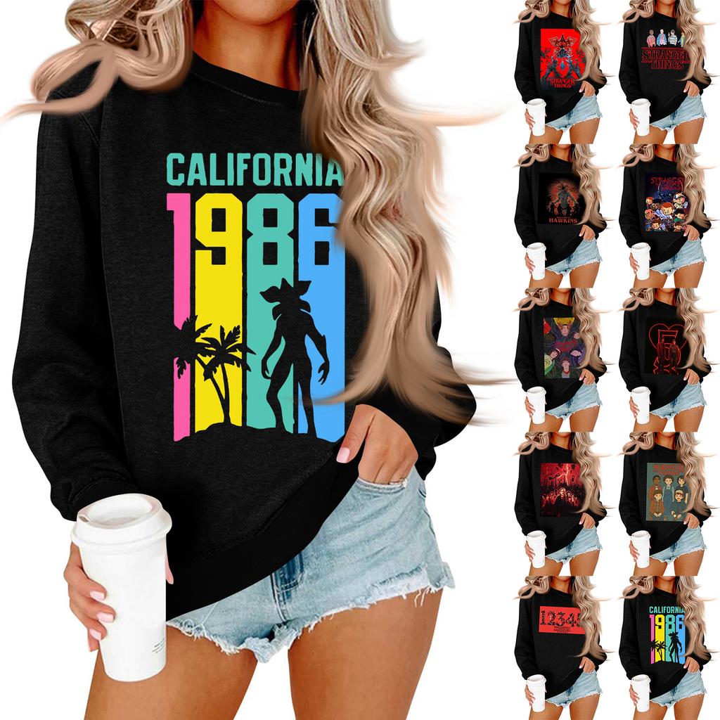 Женская и мужская унисекс модная повседневная толстовка с длинными рукавами, свободного кроя, с принтом, с круглым вырезом